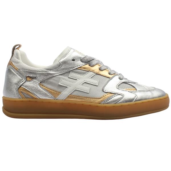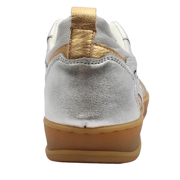 These ladies trainers from Another Trend Shoes, model A033T141, showcases a stylish combination of soft silver leather with gold and mesh detailing. Another Trend branding at the side, creates striking contrast, giving the runner a fashion forward look while maintaining everyday versatility. This trendy design is complemented by a cushioned insole for added comfort and a gum outsole for durability. Perfect for pairing with outfits, this trainer offers both fashion and function.