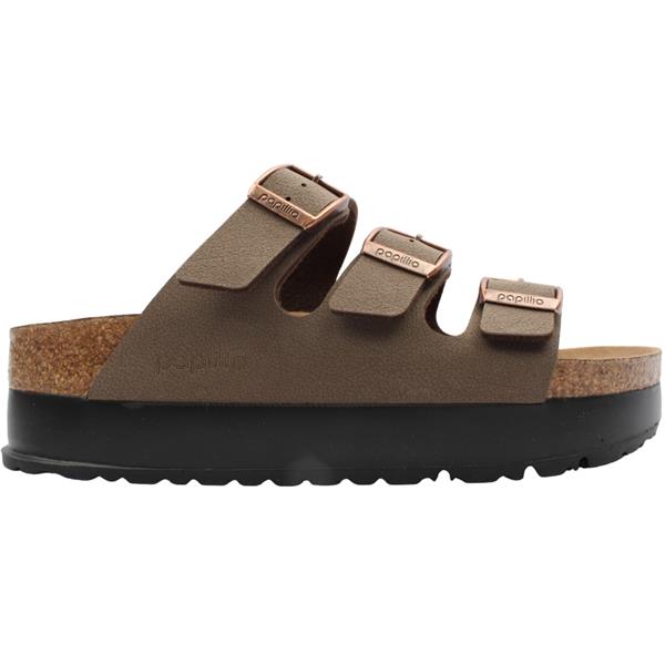 Step into ultimate comfort and timeless style with the womens Papillio Birkenstock sandals. Featuring an anatomically shaped cork latex footbed this sandal provides exceptional support. The platform sole adds a trendy lift while maintaining all day wearability. Designed with three straps each equipped with an individually adjustable metal pin buckle.