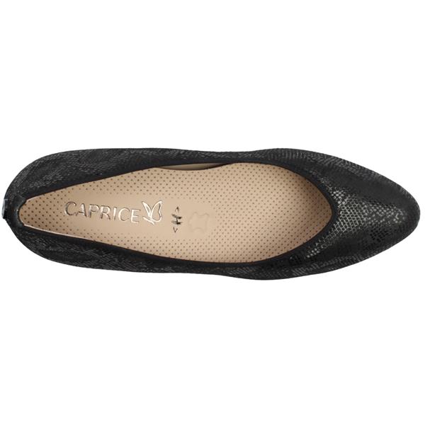 Brand: Caprice Style: 22308-43 Colour: Black Lizard Closure: Slip on Removable Insole: Yes Heel Height: Approx 4.5cm Width: H Fitting Materials: Leather upper, textile/synthetic lining & manmade sole