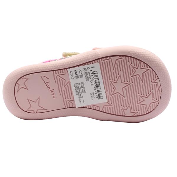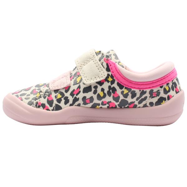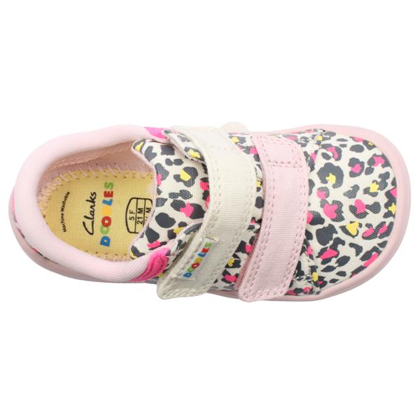 Clarks Briley Fly T are cute girls shoes from the Clarks Shoes Doodles range. With a fun and vibrant canvas upper they are lighthwe and perfect for summer. The velcro straps allow for easy on/off and a perfect fit. These shoes are machine washable for easy care to keep them looking fresh for longer. These kids shoes have been designed by using a toddler specific silhouette to aid the foots natural development.