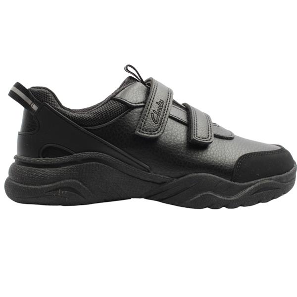 Black boys School Shoes from Clarks shoes. Clarks Feather Shine K blends sporty style with classroom ready practicality. A double Velcro strap closure allows your little one to put these on/off with ease. For protection and visibility, it's complete with reflective details and a moulded rubber heel piece. Featuring Clarks Microban odour control lining which keeps shoes feeling fresh.