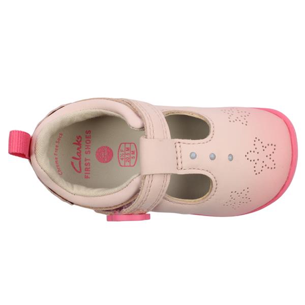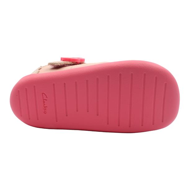 These Clarks prewalkers shoes support every shuffle and wobble as your little one begins their journey towards those brave first steps.They are crafted for maximum barefoot freedom & designed using a child-specific last to aid the gait cycle’s natural development. The flexible soles allow little toes to feel the floor beneath them for extra balance and stable steps. A chrome-free leather sock lining creates a natural, breathable foot environment for delicate skin.The Velcro strap makes them easy to put on and take off.