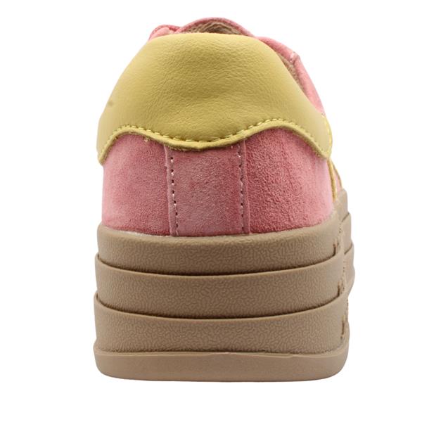 Step up your style game with these affordble ladies trainers from Drilleys Shoes. The Drilleys Sixty Eight Platform Trainers, featuring a pink upper with butter yellow detailing for a timeless, effortlessly cool look. The platform sole adds a modern edge while providing a comfortable lift, perfect for all-day wear.
