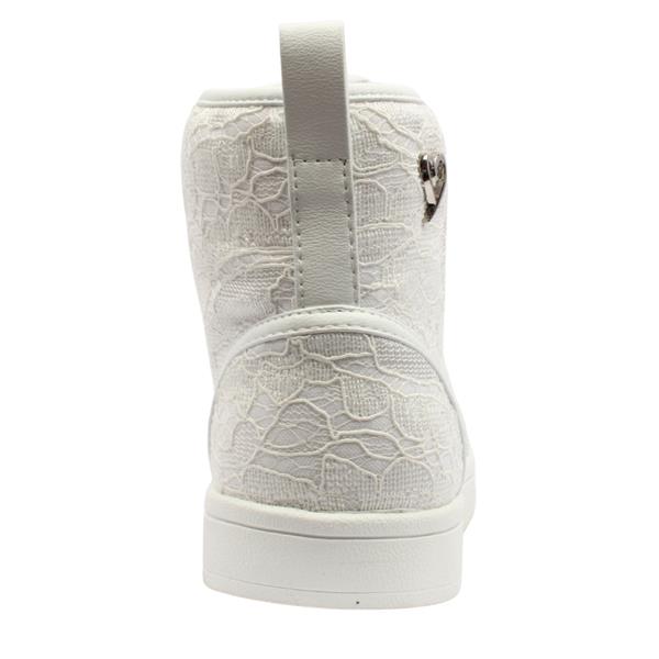 Celebrate her special day in style with the Dubarry, Virginia Girls Hi-Top Communion Boot in beautiful white smooth faux leather combined with a Floral Lace design. Designed to combine elegance with a modern twist, this charming hi-top boot features delicate ribbon laces that add a soft, feminine touch. A single diamanté charm detail enhances the design with just the right amount of sparkle, making it perfect for communions and other cherished occasions. The supportive hi-top silhouette offers comfort and stability, while the lace material complements formal dresses beautifully. Thoughtfully crafted for both style and practicality, this boot ensures she feels confident and comfortable throughout her special celebration.