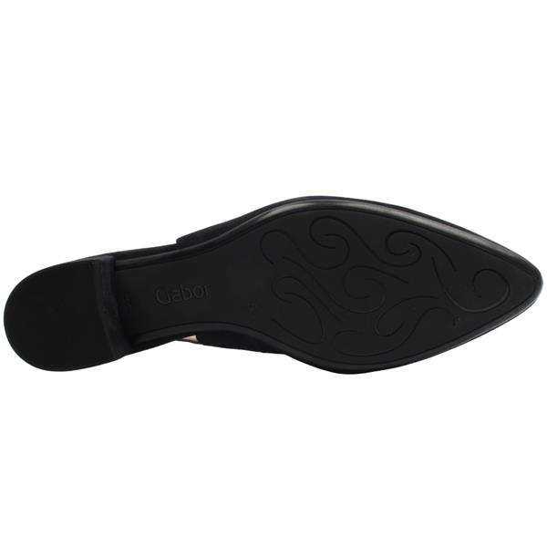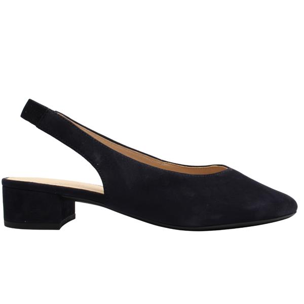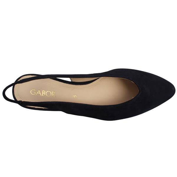 Brand: Gabor Style: 81.520.16 Colour: Dark Navy Closure: Slip On/ Sling Back Height: Approx 3cm Removeable Insole: No Width: Standard Materials: Suede Leather Upper, Leather Insole, Manmade Outsole.