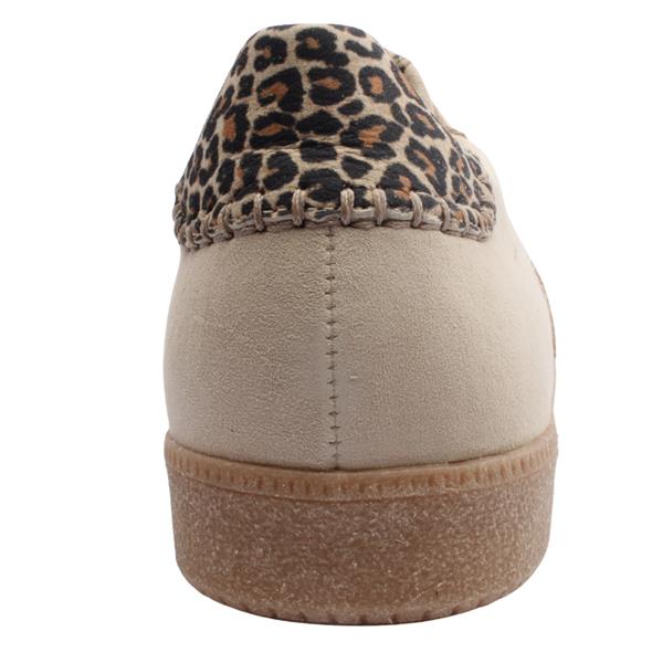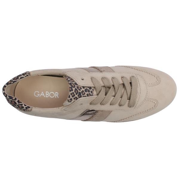 Add a touch of luxury to your casual wardrobe with the Gabor Ladies shoes 83301. Crafted in soft taupe suede, this stylish trainer is enhanced with eye-catching leopard print detailing on the tongue and heel, giving it a fashionable edge. Subtle gold accents and deeper taupe side detailing add further sophistication and depth to the design. Designed with comfort in mind, this runner features a removable cushioned leather insole for breathable, underfoot support and the option to insert custom orthotics if needed. Combining premium materials with a modern silhouette, it is perfect for everyday wear while offering the quality and comfort Gabor Shoes are known for.