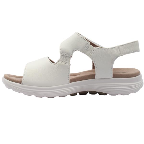 Step into all day comfort with these womens sandals from Gabor shoes Rolling soft collection . Crafted with a crisp white leather upper this sandal feels soft and breathable. The double Velcro closures provide easy customisable adjustability for a secure and personalised fit. Subtle side gussets offer a touch of flexible give. Beneath your foot the signature Rolling Soft sole technology delivers enhanced flexibility and gentle cushioning.
