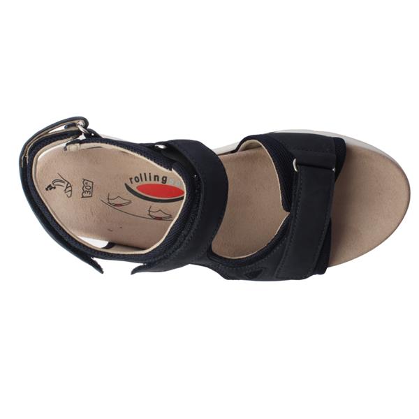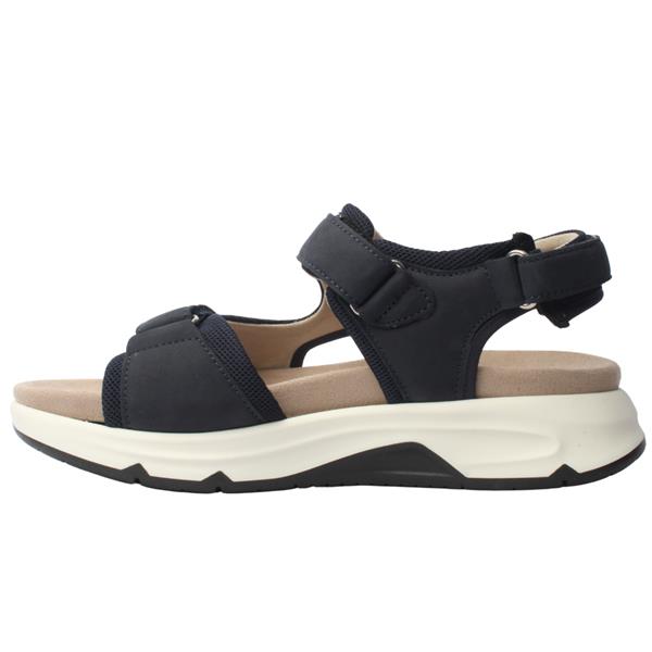 Experience superior comfort and effortless movement with the Gabor Rolling Soft Sandals 86.889 in Navy Nubuck with Navy lining. Designed with Gabor Shoes innovative Rolling Soft technology, this sandal promotes a natural, smooth walking motion. The curved sole gently rolls you from step to step, while the cushioned heel enhances shock absorption for a softer gait. An integrated stabiliser provides controlled movement and added support, ensuring all-day comfort with every stride. Crafted with a flexible upper for a comfortable fit, this style features three adjustable Velcro straps, allowing you to customise the fit in three different ways for maximum support and security. The removable insole adds practicality and hygiene benefits, and can be washed at 30 degrees to keep your sandals feeling fresh.