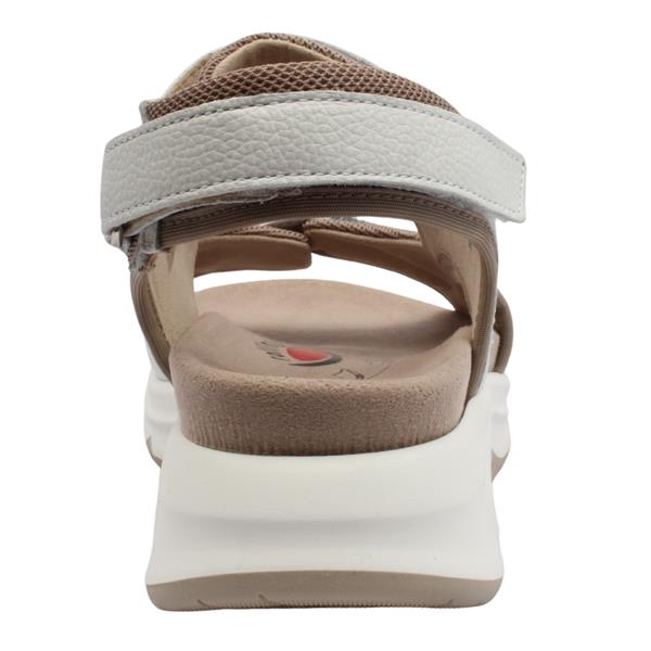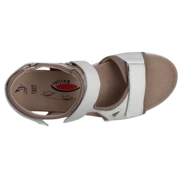 Experience superior comfort and effortless movement with the Gabor Shoes Rolling Soft Sandals 86.889 in fresh white with soft beige lining. Designed with Gabor Shoes innovative Rolling Soft technology, this sandal promotes a natural, smooth walking motion. The curved sole gently rolls you from step to step, while the cushioned heel enhances shock absorption for a softer gait. An integrated stabiliser provides controlled movement and added support, ensuring all-day comfort with every stride. Crafted with a flexible upper for a comfortable fit, this style features three adjustable Velcro straps, allowing you to customise the fit in three different ways for maximum support and security. The removable insole adds practicality and hygiene benefits, and can be washed at 30 degrees to keep your sandals feeling fresh.