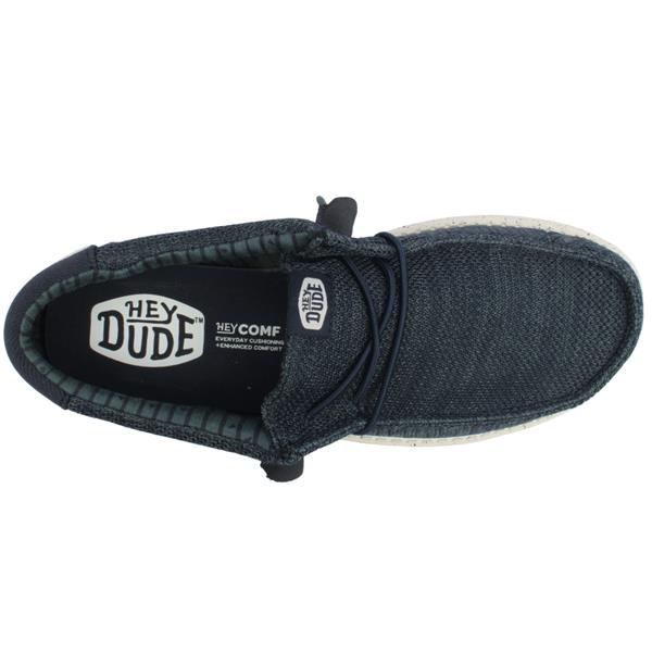 Brand: Hey Dude Style: 41898Wally Colour: Navy Closure: Slip on Height: Approx. 3CM Removable Insole: Yes Materials: Textile Upper, Lining & Manmade sole