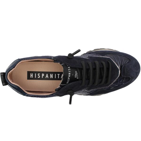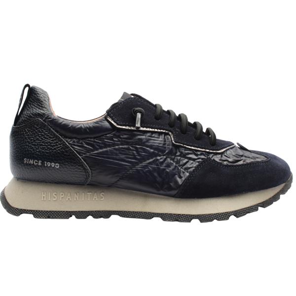 Brand: Hispanitas Style: HI254209 Colour: Navy Removable insole: Yes Closure: Elastic Lace Heel Height: Approx 2.5 cm Materials: Leather/textile upper, synthetic lining & manmade sole
