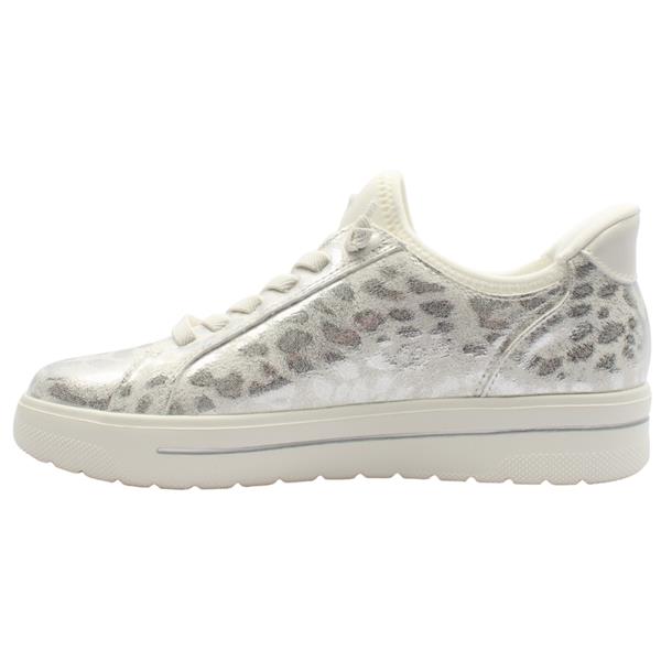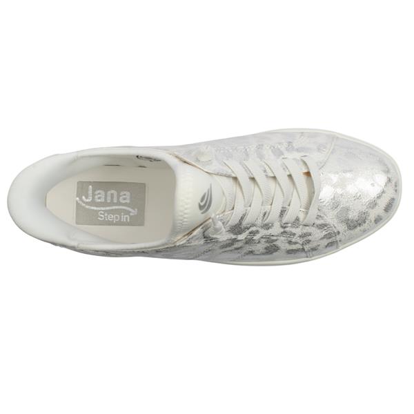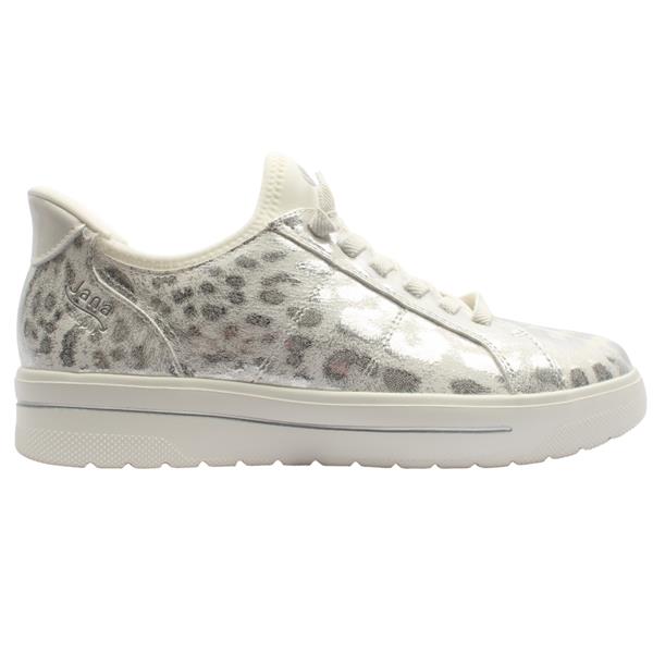 Slip into everyday ease with the Jana Step-In Shoes, designed for effortless wear and all-day comfort.Featuring a crisp white upper enhanced with a subtle silver metallic leopard print design, this stylish shoe offers a perfect balance of fashion and comfort. An elasticated lace offers easy on-and-off and a flexible fit. Built with an ultra-lightweight sole and Jana H-width fit, it offers extra room where you need it most without compromising on style.