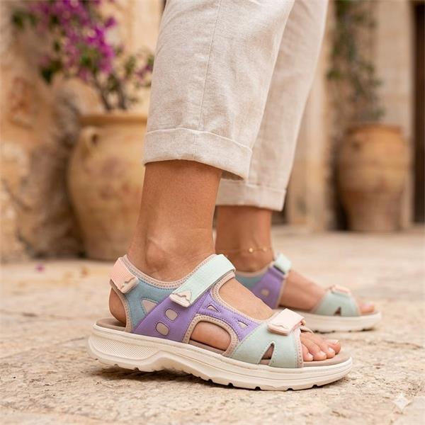 Step into all day comfort with womens Jana sandals. Designed with a versatile multi textile upper it offers a modern look while ensuring breathability and flexibility. The Relax H fit provides extra width for enhanced comfort. Featuring a convenient triple Velcro closure this sandal allows for easy adjustment and a secure and personalised fit.