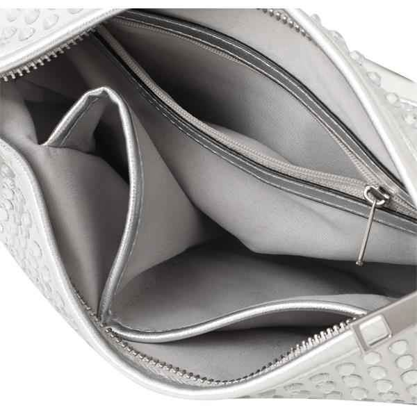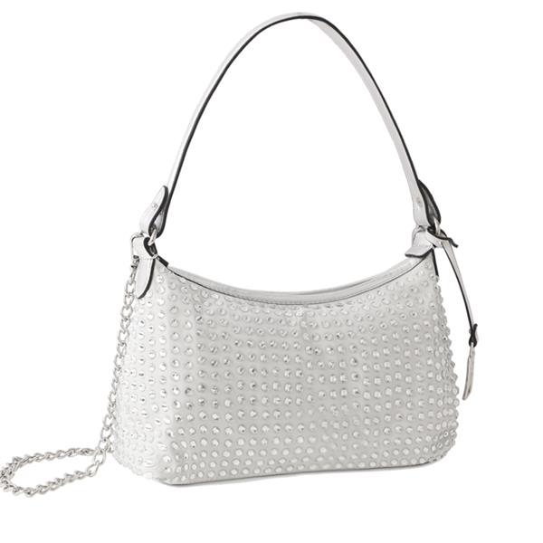 Shine in style with this dazzling Marco Tozzi silver handbag, beautifully accented with sparkling silver diamanté for a glamorous finish. Designed to take you from daytime chic to evening elegance, it combines standout style with functional design. Eye-catching silver diamanté detailing which adds luxurious sparkle and elevates any outfit. Perfectly sized, approx. 28 cm wide × 15 cm deep , spacious enough to hold your daily essentials while maintaining a sleek silhouette.