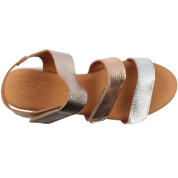 Brand: Oh My Sandal Style: 5964 Colour: Metallic Closure: Velcro Removable Insole: No Heel Height: Approx. 5.5cm Materials: Leather Upper, lining & Manmade Outsole
