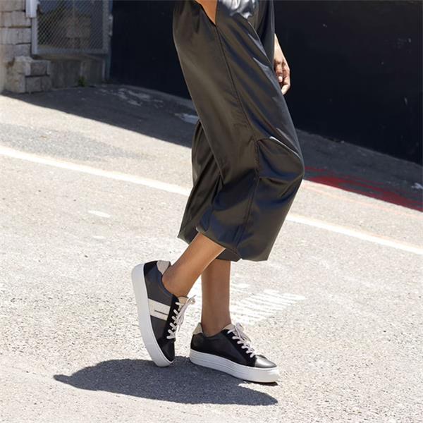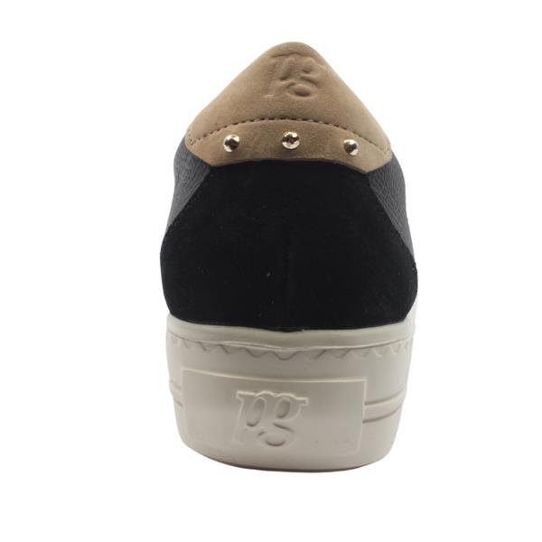 Add a touch of glamour to your everyday style with the Paul Green Shoes-5430 ladies trainers. Crafted from soft black leather with luxurious black nubuck detailing, these shoe exude understated sophistication. A gold glitter accent on the side elevates the design, adding a chic sparkle that dresses up any outfit. The soft leather insole offers supreme comfort, while the low-profile platform outsole ensures modern appeal and effortless wearability. Perfect for casual outings or when you want to add a subtle shine to your ensemble, this runner combines elegance, comfort, and versatility.