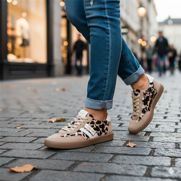 Casual ladies trainers from Paul Green shoes, a brand known for their modern design and comfort. These Paul Green Shoes, style 5437 are a slim trainer crafted with a soft beige/leopard print upper and pops of white detailing, ensuring both comfort & style. It features a lightweight, cushioned sole for excellent support and all day wearability. Equipped with Paul Green shoes Super Soft technology that enhances the comfort, providing a plush fit and feel.