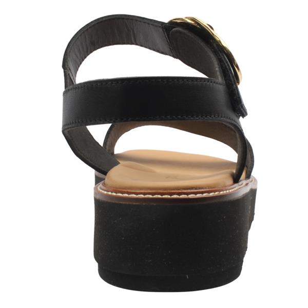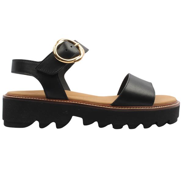 Step into effortless style and comfort with the Paul Green Ladies Sandal 6189 in classic black. Designed with both fashion and support in mind, this versatile sandal is perfect for everyday wear while maintaining a modern, elevated look. Crafted with a premium leather upper and leather insole, this sandal offers exceptional comfort & breathability. The super soft construction provides a luxurious feel with every step, while the built-in arch support ensures lasting comfort throughout the day. A chunky outsole adds a contemporary edge while providing excellent stability and durability. The adjustable velcro strap, finished with a stylish gold buckle detail, allows for a secure and personalised fit while adding a subtle touch of elegance.