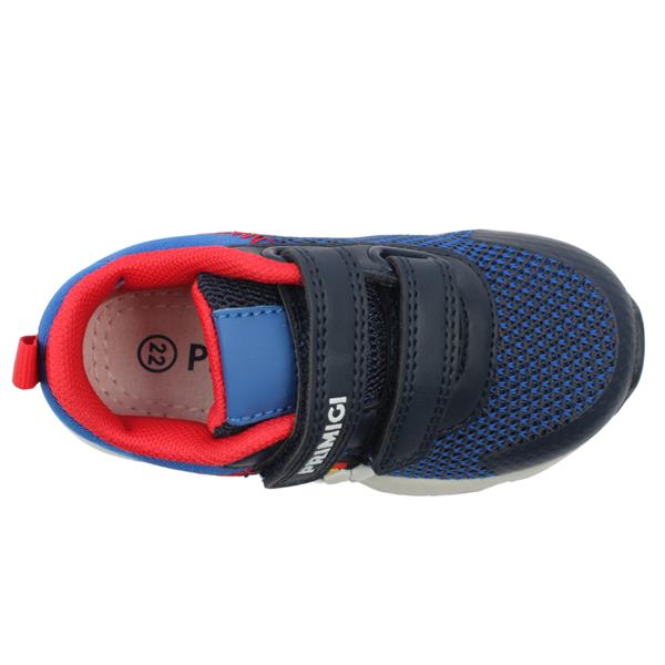 Cute light up shoes for boys from Primigi Shoes. These boys shoes have a navy textile upper with football design. Equipped with a reinforced toe to protect little toes. Deisgned with a Velcro strap closure for easy on/off while keeping the shoe secure on the foot. Flashing lights in the sole come on with each step. The cushioned leather insole ensures all day comfort and support and this can be removed to allow for a custom orthotic if needed.