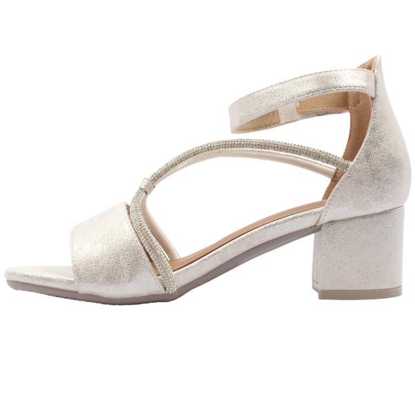 Step out in sparkle with the womens block heel sandals from Redz shoes. Designed with Diamante embellished straps across the upper foot for a touch of glamour. Featuring a Velcro ankle closure for a secure and adjustable fit. The block heel design provides subtle lift while keeping you comfortable all day.