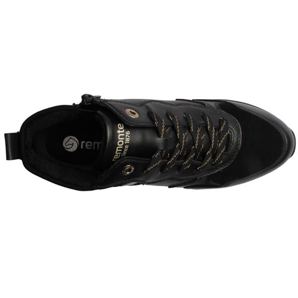 Brand: Remonte Style: D1G71-00 Colour: Black Closure: Lace & Zip Removable Insole: No Height: Approx 3.5xm Materials: Leather/Synthetic Upper, Textile Lining & Manmade sole