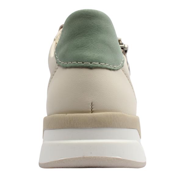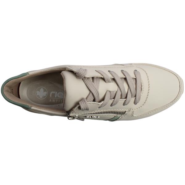 Add effortless comfort and casual style to your everyday wardrobe with the Ladies Rieker Shoes style 58902-60. Designed with a soft beige upper, these trainers are complemented by white accents and subtle mint trim details for a fresh, modern look. The combination of lace and a side zip allows for easy on/off wear while ensuring a secure, adjustable fit. Inside, a removable padded Rieker Antistress insole provides excellent cushioning, flexibility and shock absorption, delivering all-day comfort with every step. Perfect for relaxed days, walking or casual outings, these Rieker trainers blend practicality with understated style.