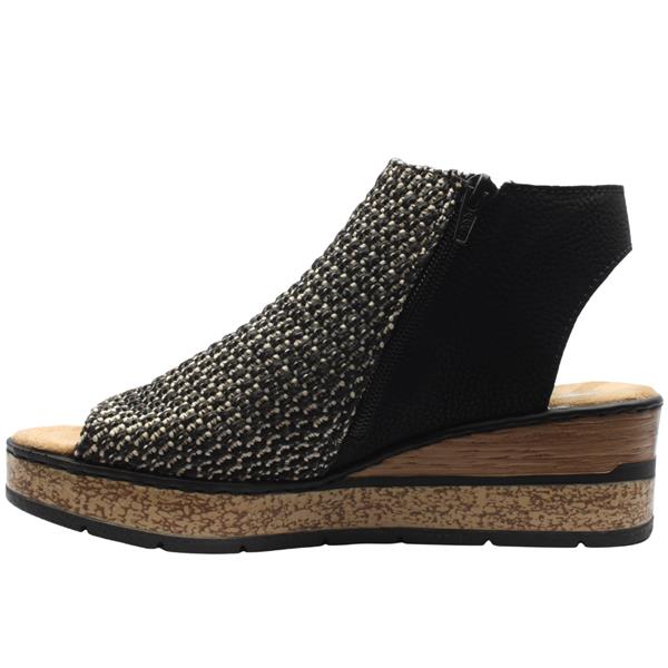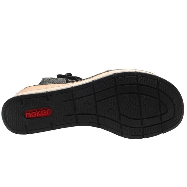 Stunning ladies sandals from Rieker shoes featuring a size zip to allow easy/on. Designed with Rieker Shoes signature Antistress padded insole, these sandals provide exceptional cushioning and shock absorption, reducing foot fatigue and enhancing all-day wearability. The lift in the heel allows optimal comfort and stability for all day wear.