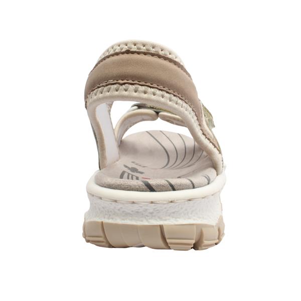 Ladies walking sandals from our Rieker sandals range – a fusion of style and comfort, perfect for the woman who values both fashion and functionality in her footwear. Practicality meets style with the adjustable velcro straps, allowing you to customise the fit to your preference. The secure closure ensures stability, making these sandals suitable for various outdoor activities.