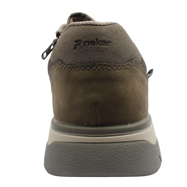Stylish Mens shoes from Rieker Shoes that delivers a perfect blend of style and everyday comfort. Designed in a wide fitting, they offer extra space for a relaxed, supportive feel. The Khaki green upper is complemented by a grey lace fastening and heel detail. A practical side zip allows for easy wear and an adjustable fit. Finished with a removable Rieker Soft insole, these shoes offer cushioned support that can be adapted to suit your individual comfort needs.