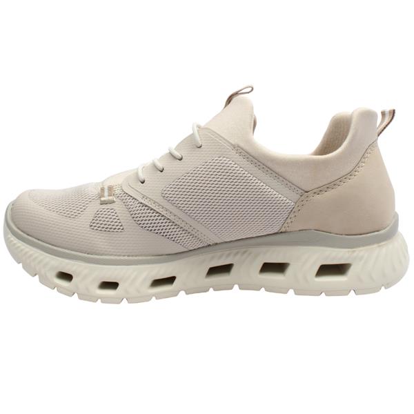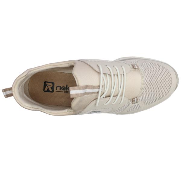 Refresh your everyday footwear with these stylish and comfortable Rieker ladies shoes. Designed in a versatile beige textile and synthetic upper, they offer a light, modern look that is easy to pair with a wide range of outfits. The slip-on design is complemented by decorative elastic lace detailing, giving the appearance of a lace-up while allowing for quick and effortless wear. Inside, a padded Rieker Soft insole delivers enhanced cushioning and support, ensuring comfort throughout the day. Lightweight and flexible making them ideal for walking, travel, and everyday activities.