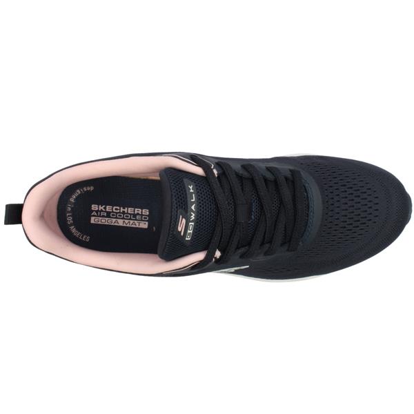 Brand: Skechers Style: 125145 Go Walk Glide Step 2.0 Colour: Navy Pink Closure: Slip On Removable Insole: No Heel Height: Approx. 4CM Materials: Textile Upper, Lining & Manmade Outsole