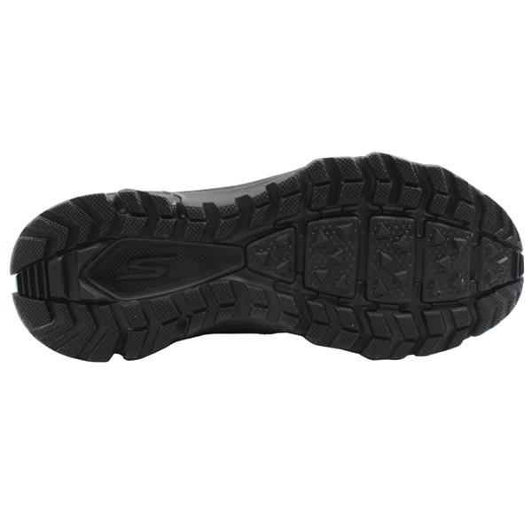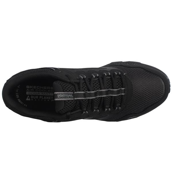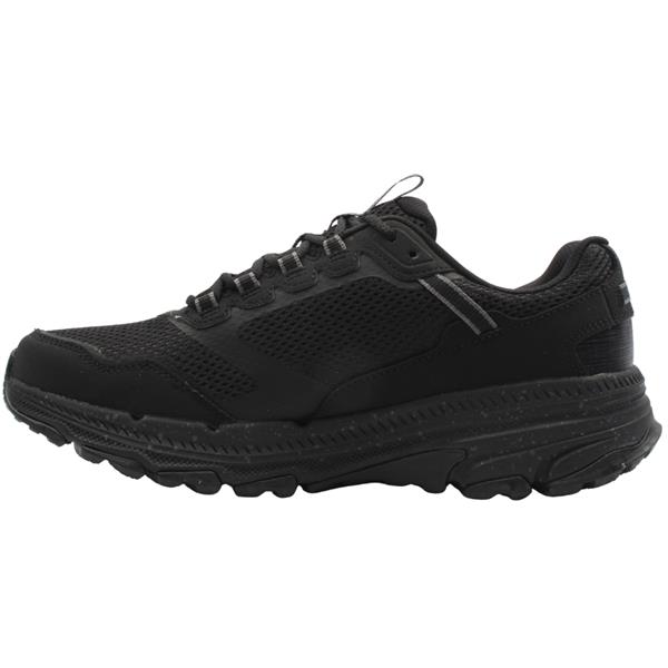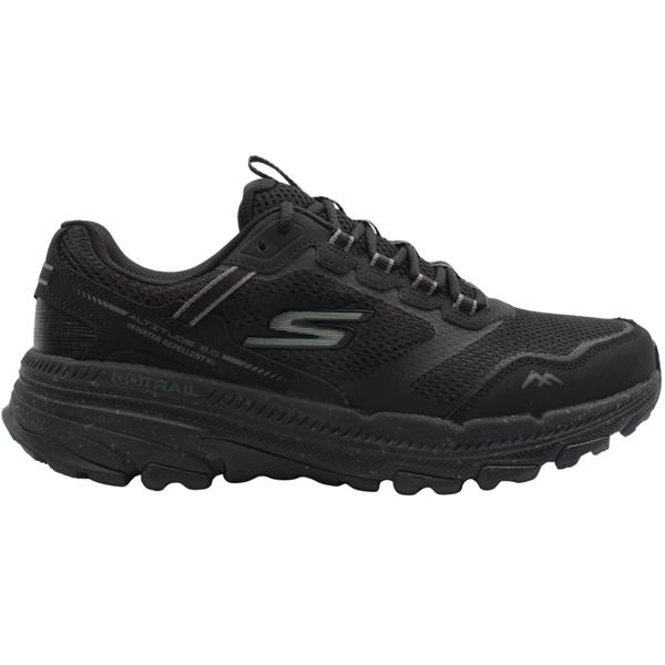 Take on trails with confidence in these Skechers womens trail runners. Crafted with an all black leather and mesh upper, this trainer offers a balance of durability and breathability. Equipped with Skechers Air Cooled Goga Mat insole, it provides high rebound cushioning that keeps your feet cool and comfortable during extended wear. Features a water repellent design, helping to keep your feet dry in damp conditions. The Skechers Go Trail outsole is designed with multi directional traction lugs, providing grip and stability.