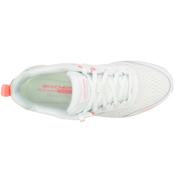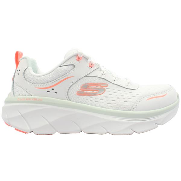 Supportive and comfortable womens trainer from Skechers Relaxed Fit: DLux Walker collection. This sporty lace-up trainers boasts an engineered white multi mesh upper with leather overlays offering both durability and breathability. Experience superior comfort with the cushioned Skechers Air Cooled Memory Foam insole, ensuring a plush and supportive feel with every step.