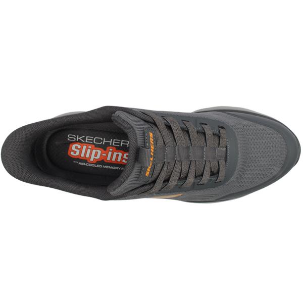 Step into easy wear comfort with the Skechers Hands Free Slip-ins Shoes. Designed with the exclusive Skechers Heel Pillow, these Mens Skechers features an engineered knit and hotmelt overlay upper with an elastic lace design for easy on/off & a secure fit. Featuring a lightweight flexible shock-absorbing midsole combined with a Skechers Air-Cooled Memory Foam insole that ensures all day cushioned comfort.