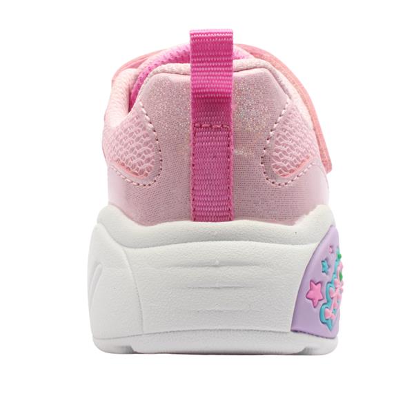 Cute,fun and built for little adventures these Girls Skechers runners in playful pink are the perfect everyday shoe for busy little feet. Featuring fun graphics on the outsole. Designed with cushioned support, these shoes offer all-day comfort. The lightweight and flexible design makes moving easy, while the double Velcro straps ensure a secure, easy fit.
