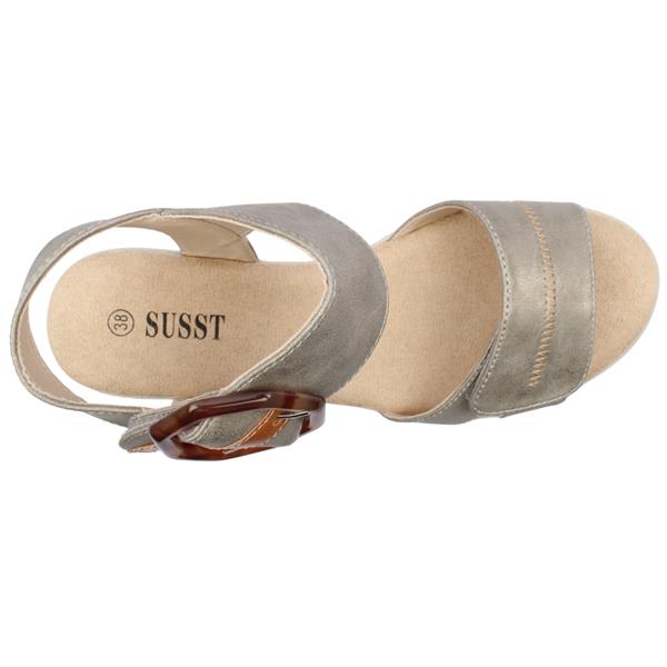 Ladies wedge sandals from Susst shoes are the perfect blend of fashion and comfort. These ladies sandals feature double velcro straps with large faux buckle design. Designed with your comfort in mind, these sandals have a padded insole. Whether you are stepping out for a casual day or dressing up for a special occasion, these sandals are sure to make a statement.
