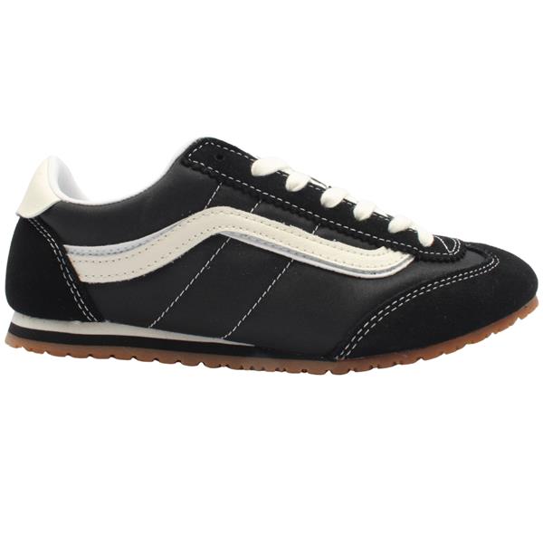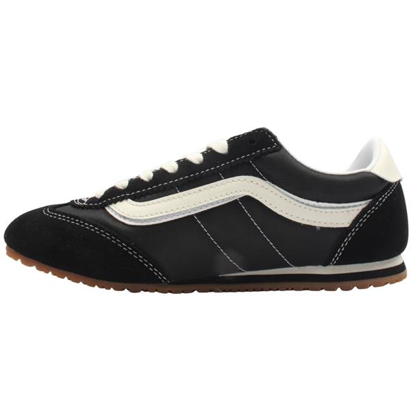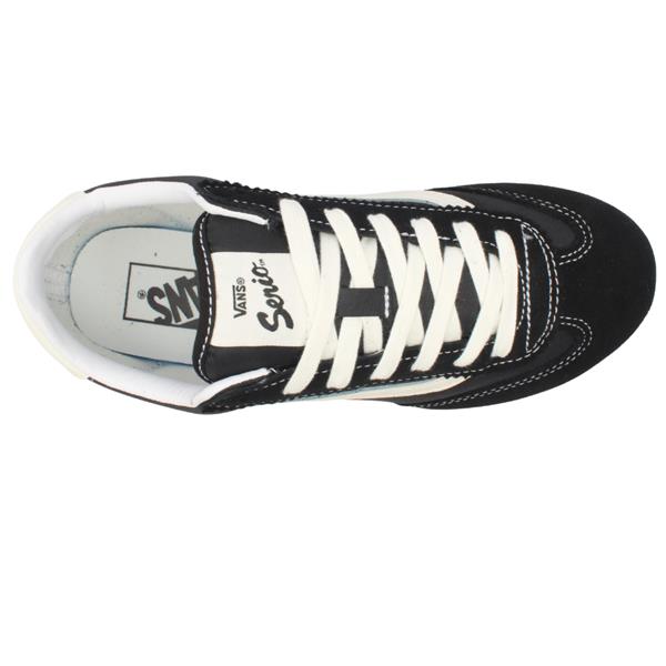 The Vans Super Lowpro shoes are a slim style of the classic Vans Shoes. These Ladies Vans trainers feature a durable black suede upper with white detailing. A lace closure ensures a secure fit.