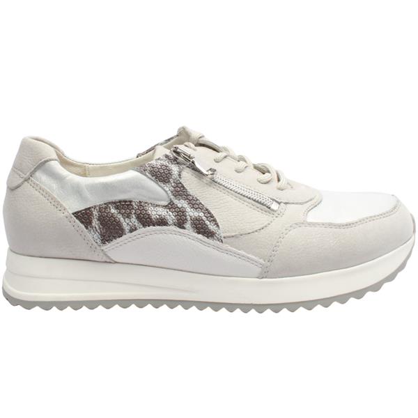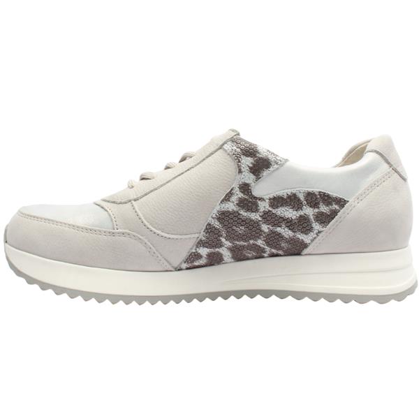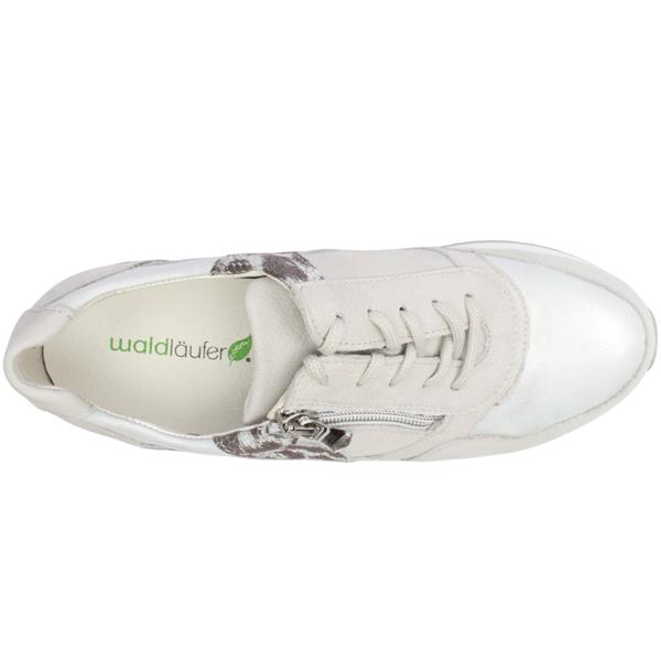 Step into comfort and contemporary style with the womens trainers from Waldlaufer shoes. Crafted with a soft grey upper featuring a subtle sparkle and silver accents, this lightweight shoe adds an elegant touch to your everyday look. Designed for convenience it offers both lace-up and side zip closures giving you a secure fit with easy on and off wear. Inside a removable insole accommodates orthotics or allows for extra depth.
