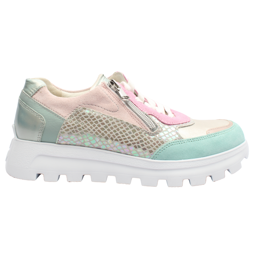 Brand: Waldlaufer Style: 993004 Colour: Pink Combi Closure: Lace and Zip Width Fitting: H Extra Wide Fitting Removable Insole: Yes Heel Height: Approx. 3.5cm Materials: Leather Upper, leather/textile lining & manamde sole