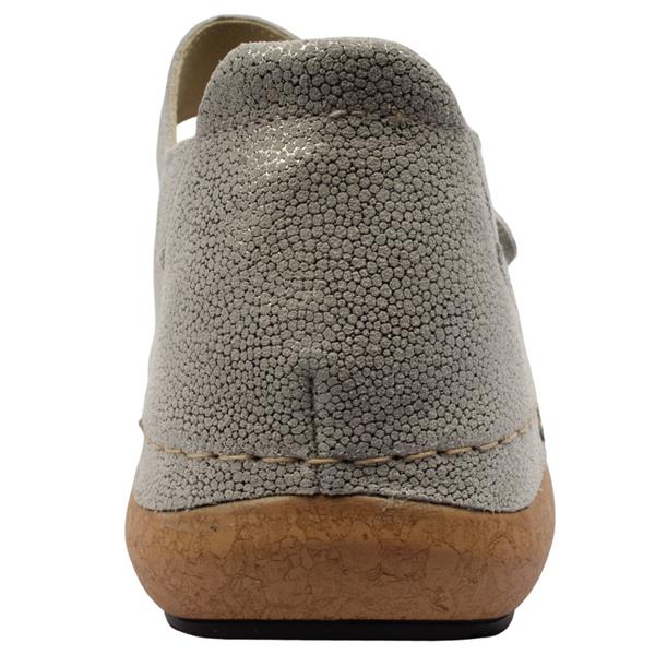 Womens wide fitting sandals from Waldlaufer shoes. Crafted from supple high quality leather in a metallic finish. Two adjustable Velcro straps across the forefoot let you customise the fit instantly. The cushioned insole is removable and secured by Velcro so you can easily swap it out for your own orthotics or preferred footbed. The enclosed heel offers added stability making these great for both strolling days out and extended wear.