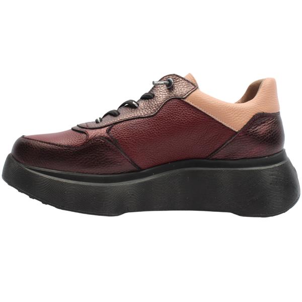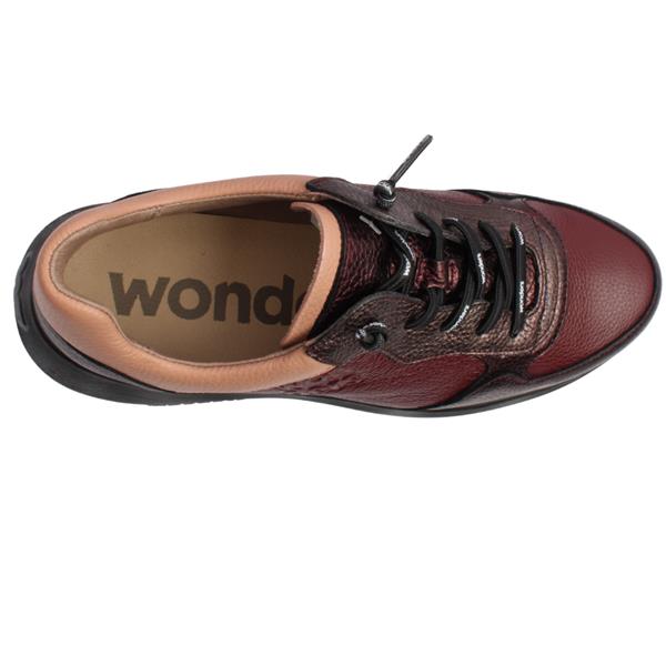 Elevate your everyday look with the Wonders Ladies Shoe, A3630, crafted in a rich wine leather mix for a fresh, modern finish. The sleek design is complemented by a crisp white platform wedge outsole, adding contemporary contrast and a touch of sporty edge. Designed for ease and comfort, the A3630 features elastic laces for quick slip-on wear and a lightweight upper that moves with you. The removable MemoryGel leather insole provides superior cushioning and support, making it perfect for all-day wear.